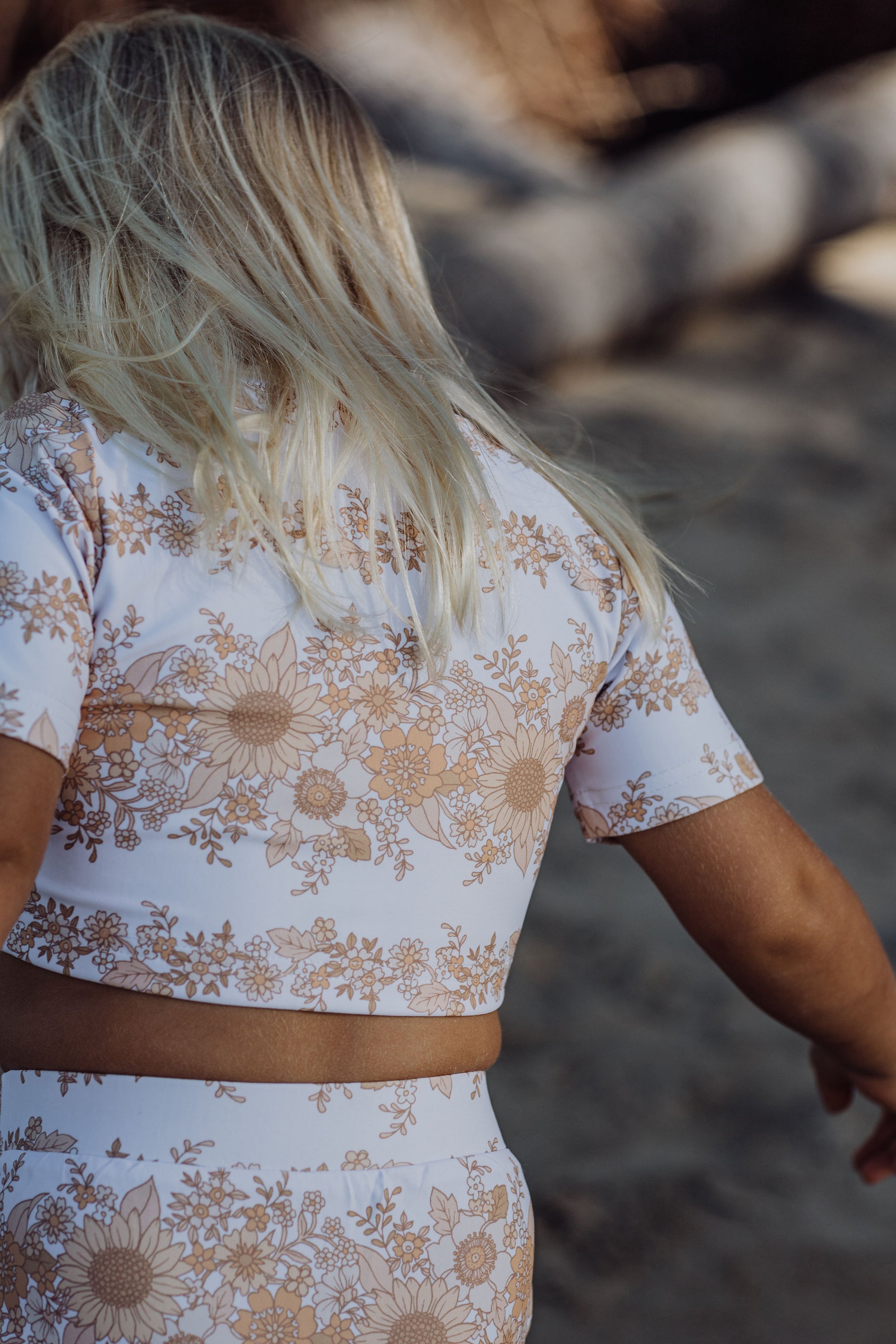 Our newest swim piece is our Goldie retro bikini in the gorgeous vintage sunflowers print.